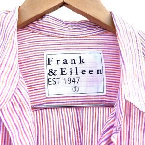 Frank & Eileen Barry Linen Striped Button Up Shirt Top Pink White Large Yellow