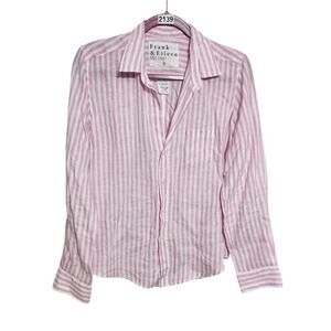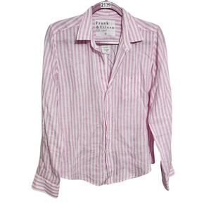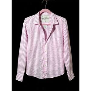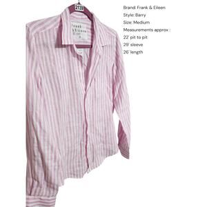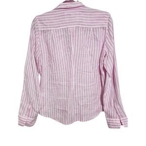 Frank & Eileen Barry Womens Pink & White Striped 100% Linen Shirt Medium NWT