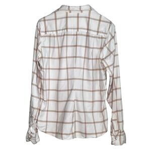 Frank & Eileen Barry Woven Long Sleeve Button Up Shirt Camel Windowpane Women's S