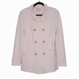 frank and eileen belfast vintage rose pink triple fleece sweatshirt peacoat size s cotton double breasted horn buttons notched lapel cozy chic quiet luxury timeless casual relaxed fit designer coat double breasted cotton casual layering piece minimalist elevated basic sustainable fashion coastal chic fall winter essential
