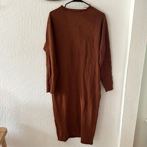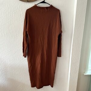Frank & Eileen Brown Camel Isabelle Funnel Neck Sweater Dress Midi Maxi Small