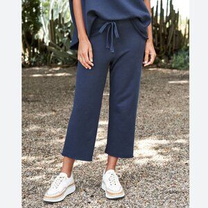 Frank & Eileen CATHERINE Triple Fleece Wide Leg Crop Sweatpants Size: L Navy
