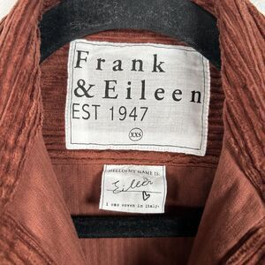 This western, designer, Italian, minimalist, bohemian, and classic themed shirt has accents of buttons and is from the brand Frank & Eileen. It comes in size XXS and is a regular fit. The fabric type is corduroy, which adds texture to the top. With its relaxed style, it is a basic yet stylish addition to any outfit.