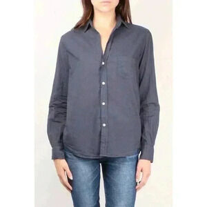 Frank & Eileen EILEEN Poplin Button Down Shirt XS Long-Sleeve Cotton Navy Blue