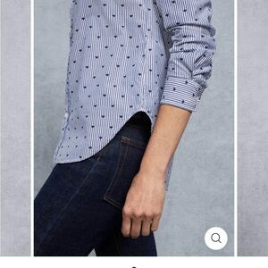 Frank & Eileen Frank Navy Hearts Striped Button Down XS