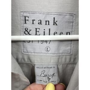Keywords: Frank & Eileen, Gray, button-front shirt, fitted, distressed hem, Italian fabric, size large