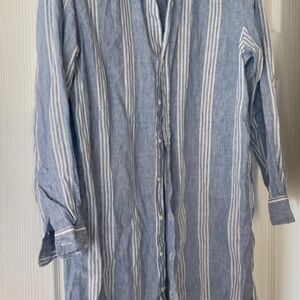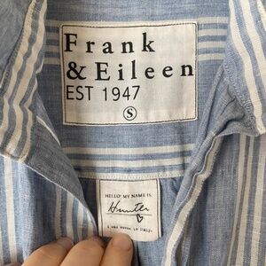 Frank & Eileen Hunter Dress Small Luxury Linen stripes Coastal Resort blue S