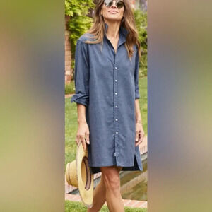 Frank & Eileen Hunter Step-Hem Shirtdress Blue Flecks Size Extra Small.