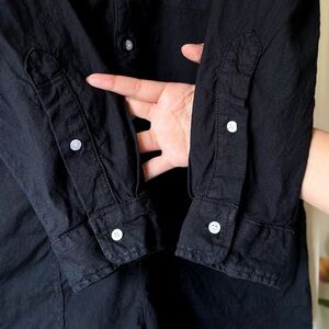 Tags: frank & eileen, ireland romper, black romper, long sleeve playsuit, cotton linen blend romper, button front romper, minimalist jumpsuit