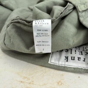 50% Cotton, 48% Linen, 2% Elastane. Our linen fiber comes from France, the raw cotton is sourced from the U.S., is spun into yarn in Southern Italy, and finished in LA.
