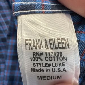 Frank & Eileen Luke Italian Flannel Button Up Shirt Size Medium Blue Plaid 100% Cotton Made in USA Excellent pre-owned condition. No holes or stains. style: quiet luxury, casual, Italian fabric, natural fibers Fast shipping. I always ship next business day unless my store is on vacation mode.