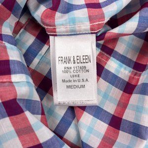 Frank & Eileen Mens Shirt M Luke Plaid Button Up Red Blue White Long Sleeve