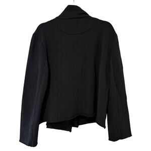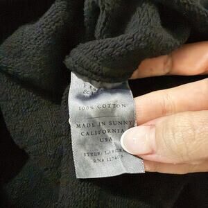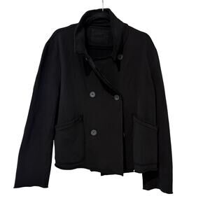 Frank & Eileen Mini Belfast Cropped Sweatshirt Peacoat in Black. Women's Size L / Large. Features double breasted closure, long sleeves, soft flexible fleece knit, collar, crop silhouette, notched lapels, patch pockets. 100% cotton. Great used condition, no notable flaws.