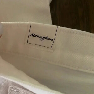 Monaghan's flattering, high-rise fit hugs the most petite part of your waist, while a straight leg and cropped, hand-distressed ankle amp up the vintage feel of this made-in-California jean.