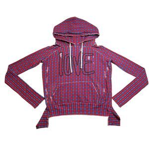 Frank & Eileen Plaid LOVE Distressed Pullover Hoodie Sweatshirt Size XS