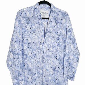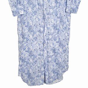 frank and eileen rory blue floral italian linen maxi shirt dress size xs long sleeve button front shirttail hem relaxed fit travel casual resortwear classic timeless soft breathable quiet luxury