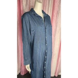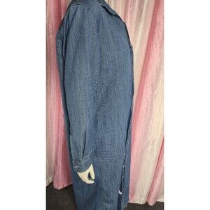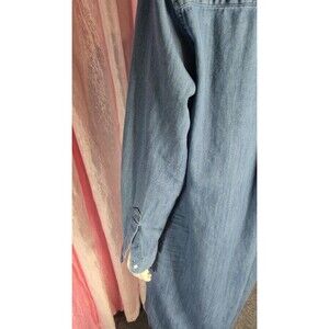The Frank and Eileen Rory Famous Denim Chambray Cotton Shirt Dress in size medium is a stylish and versatile piece perfect for various occasions. Made from 100% cotton denim, this long-sleeve dress features a collared neckline, button closure, and convenient pockets. The classic blue color adds a touch of sophistication, while the lightweight fabric makes it ideal for summer and fall outings. Whether you're traveling or dressing casually, this shirt dress is sure to become a staple in your wardrobe with its timeless design and quality construction from a reputable brand like Frank and Eileen.
