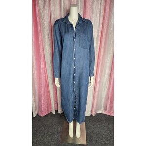 Frank & Eileen Rory Indigo Tattered Denim Cotton Maxi Shirtdress Size Medium