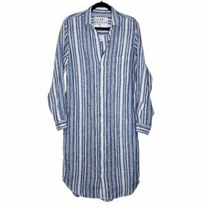 Frank & Eileen Rory Multi Blue Striped Linen Midi Shirt Dress Size S