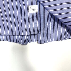 Frank & Eileen Silvio Stripe Blue Striped Button Down Made from soft Italian cotton, this striped work-to-weekend shirt features a boxy fit with a straight hem for a relaxed appearance. Slightly longer in back. One front Pocket. Oversized fit