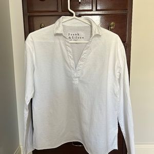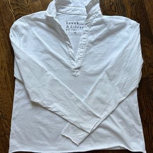 Elegant white long sleeve top. Features a stylish collar. Perfect for casual wear.