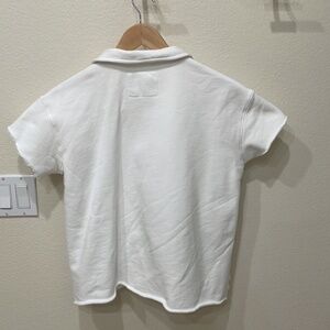 Frank & Eileen White Raw Edge short sleeve polo shirt—GREAT FABRIC!! Excellent condition! Size medium