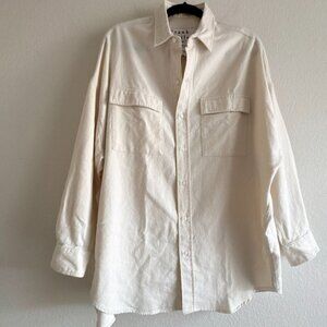 Chic Frank & Eileen shirt with a white outer layer. Blue inner shirt adds contrast. Ideal for casual wear.
