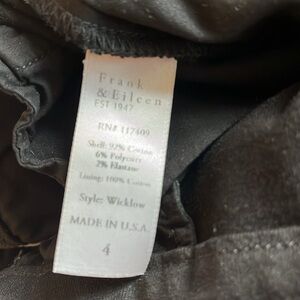 Frank & Eileen Italian cropped chino pant in black, size 4 . These have a mid rise and an intentional raw hem. It’s a classic pant that takes you from work to weekend, and beyond. No rips, stains, or tears. Please review images and approximate measurements carefully to ensure your style and fit. Ask any questions prior to purchase.