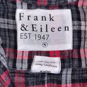 Frank & Eileen Women's Small Barry Red Gray Plaid 100% linen Button Down Blouse