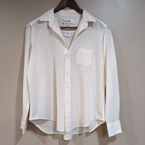 Frank & Eileen Womens XS Eileen Relaxed Button Shirt Cotton Peach Ivory Cream
