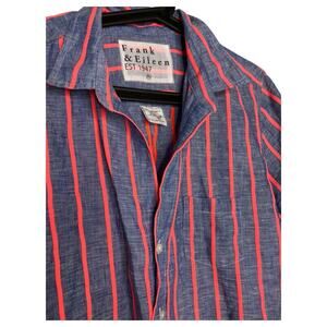 Frank & Eileen XL Barry Tailored Button Shirt Blue Fluorescent Pink Stripe Linen