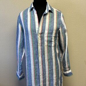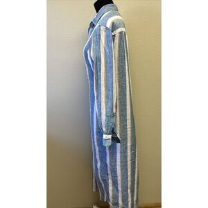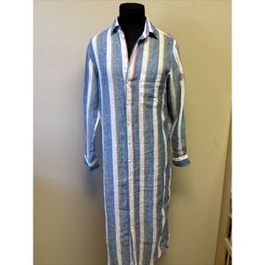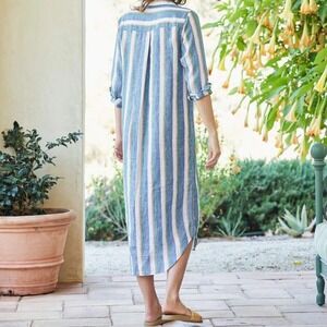 Frank & Eileen XXS Rory Woven Long Dress Lived in GPBL Multi Stripe Linen Button