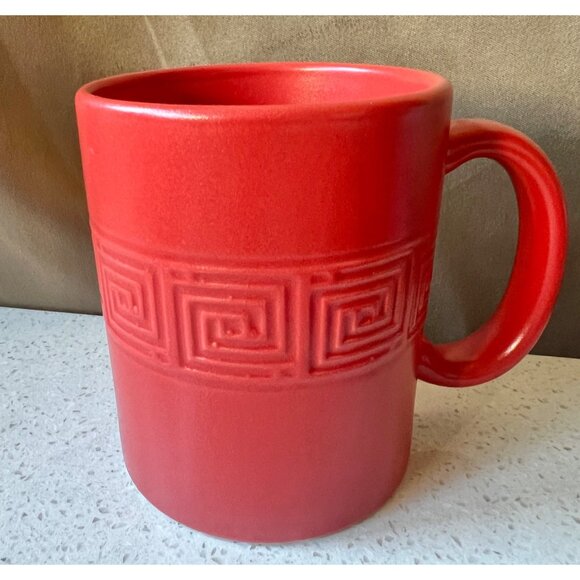 Frank Lloyd Wright Coll. Ceramic Mug Cup Embossed Geometric Pattern Orange Gift