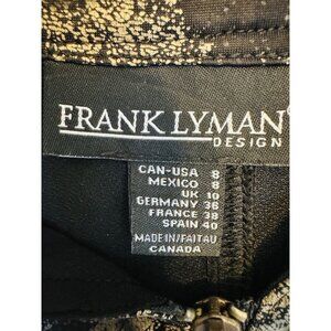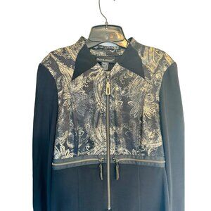 Frank Lyman, women's jacket, black and gold, zip-up top, long sleeve top, polyester top, spandex top, size 8 top, paisley design, formal top, casual top, business wear, luncheon, lunch date, meetings, fall, winter, jacket