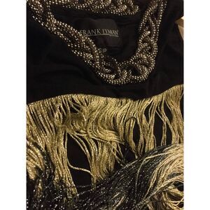 Frank Lyman Black & Gold Ombré Fringe Mini Cocktail Dress - Size S