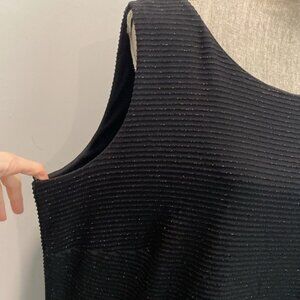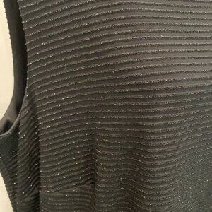 This Frank Lyman Design stretch black sleeveless dress is perfect for any occasion. Its metallic ribbed design offers a timeless look that is both sophisticated and versatile. Ideal for evening events or a stylish day out.