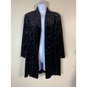 Frank Lyman Black Velvet Sequined Open Front Cardigan Size 14 Glitter Party Event