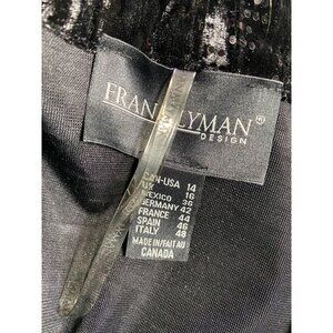 This elegant Frank Lyman jacket combines a luxurious velvet texture with shimmering sequins, offering a polished and sophisticated look for formal settings.