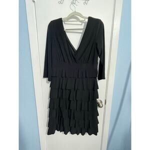 Stunning Frank Lyman Cocktail Dress Size 14 Black Tiered Ruffled Stretch Knit Whimsygoth, great condition.
