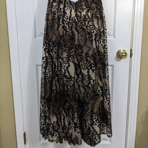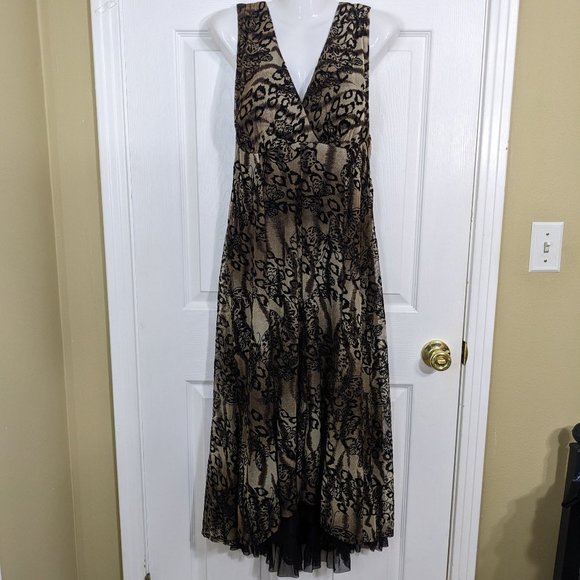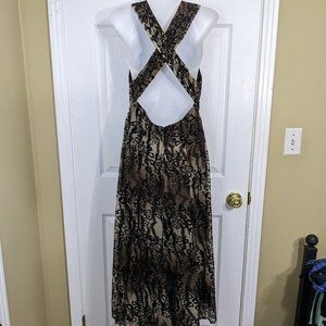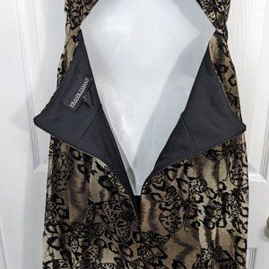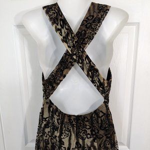 Frank Lyman Design Black/Tan/Bronze Halter Criss-Cross Back Butterfly Dress - 10