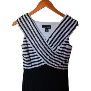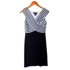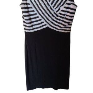 Frank Lyman Design Dress Black White Bodycon V-Neck Flattering Size 4