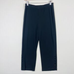 Frank Lyman Designs Black Slinky Stretchy Cropped Leggings. Polyester, with a silky jersey feel, side faceted buttons. Womens 10.