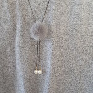 This mock neck capped sleeves sweater features a coordinating adjustable, removeable mink adornment.
