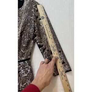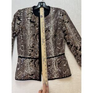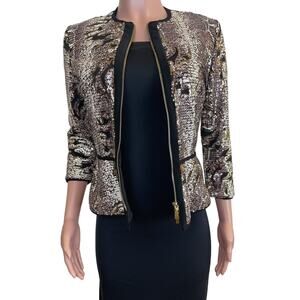 Frank Lyman Metallic Sequin Jacket Size 4 Snake Animal Print Zip Peplum Blazer