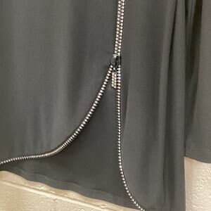 Such a beautiful evening top by Frank Lyman. Zipper and rhinestone detail. A size 14. Armpit to armpit measures 20 inches. 32 inches long.