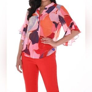 Frank Lyman Orange Pink Abstract Print Top NEW