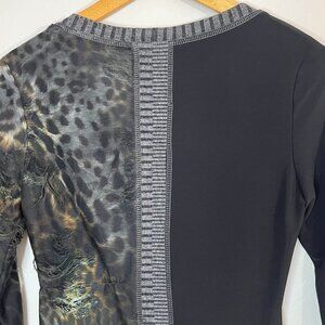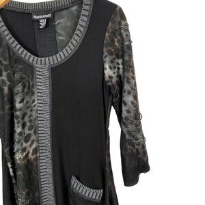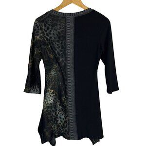 Frank Lyman Tunic Animal Print Black 3/4 Sleeve Distressed Wearable Art Size 8
