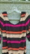 Stylish women's dress featuring bold stripes in black, fusia, orange, brown, and cream. Sexy cut around neck and shoulders. Silky stretchy material with 3/4 sleeves. The only sign of wear is a tiny ink pen mark not noticeable until close inspection (would probably come out if treated), otherwise in excellent condition from a pet and smoke-free home. SIZE 8. MEASUREMENTS laying flat approx: Pit to Pit 17 inches, Length 36 inches #959