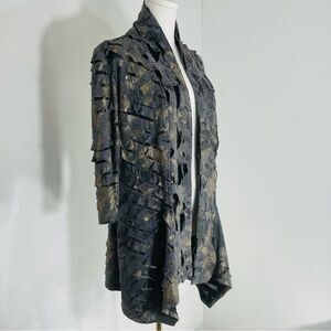 Frank Lyman Vintage Black & Gold Shredded w Elastic Open Cardigan/Jacket Size 8