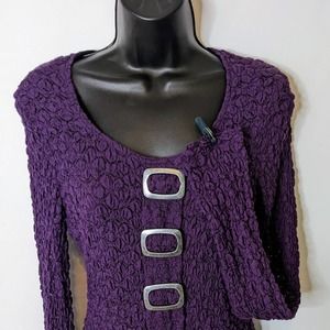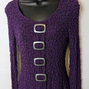 Frank Lyman Y2K Purple Lined Stretch Top with Pewter Buckles Size 10